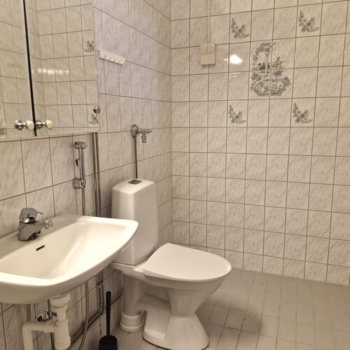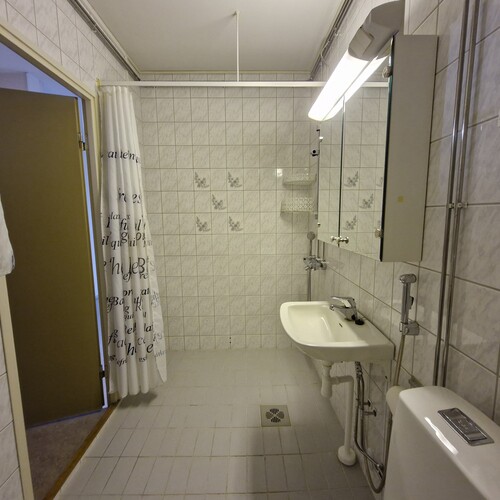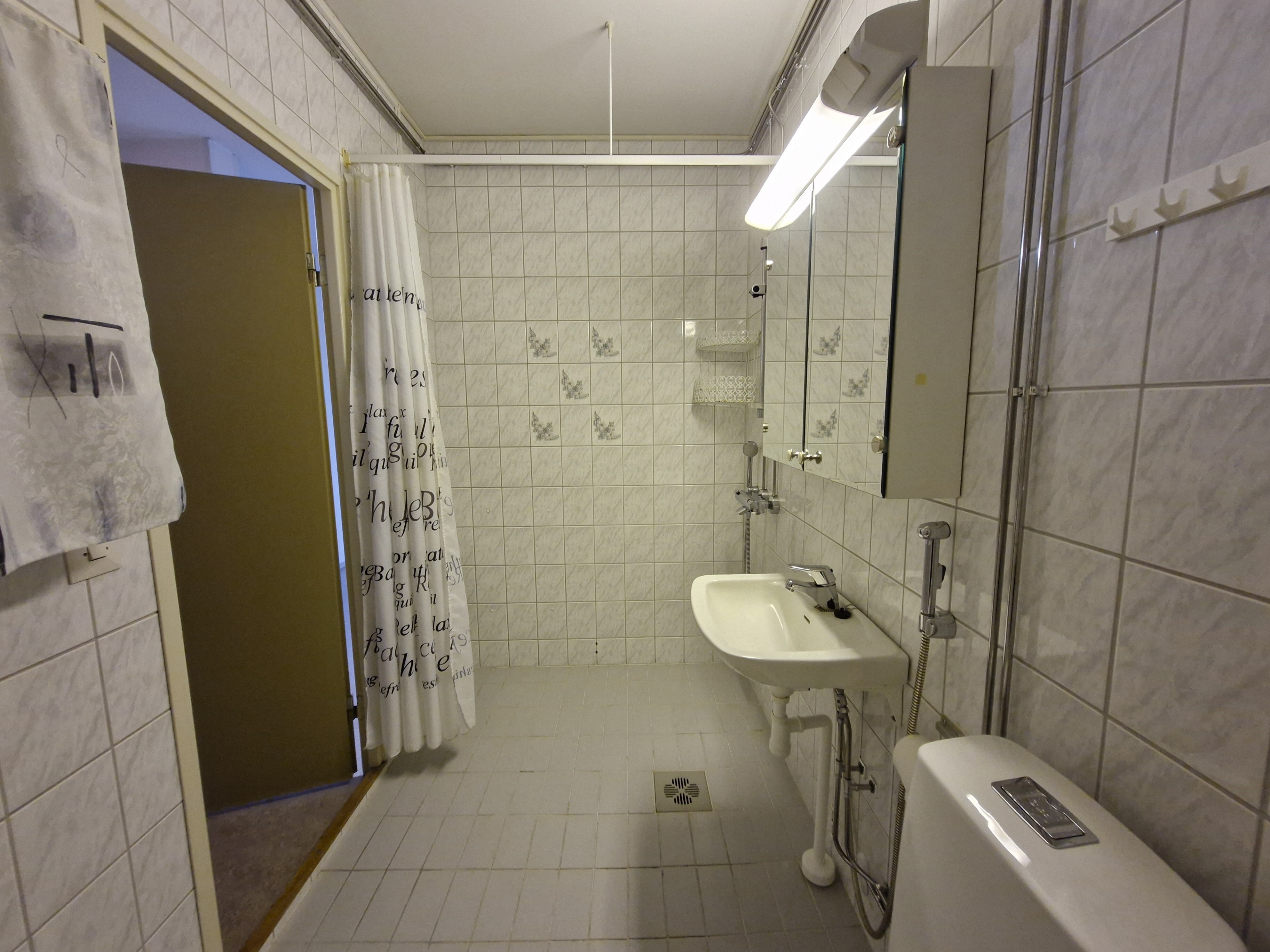 Varusteet: suihku, pesukoneliitäntä, peilikaappi