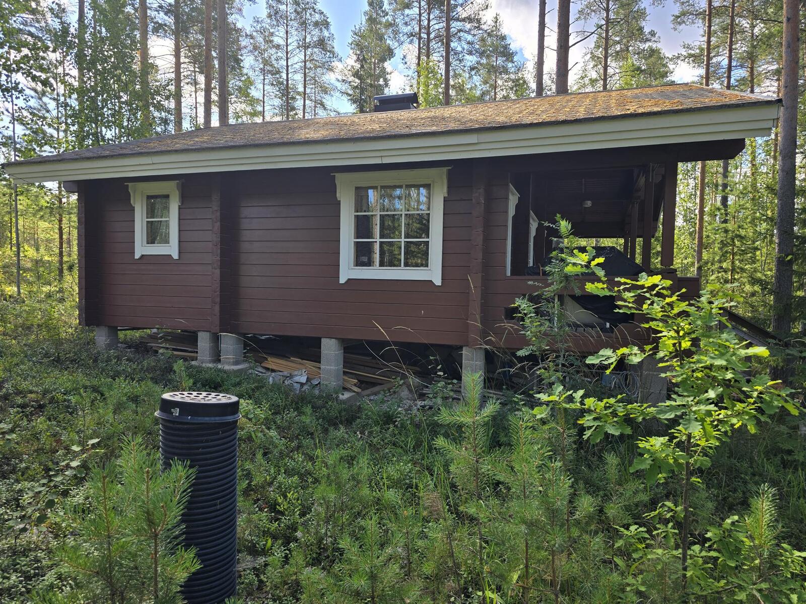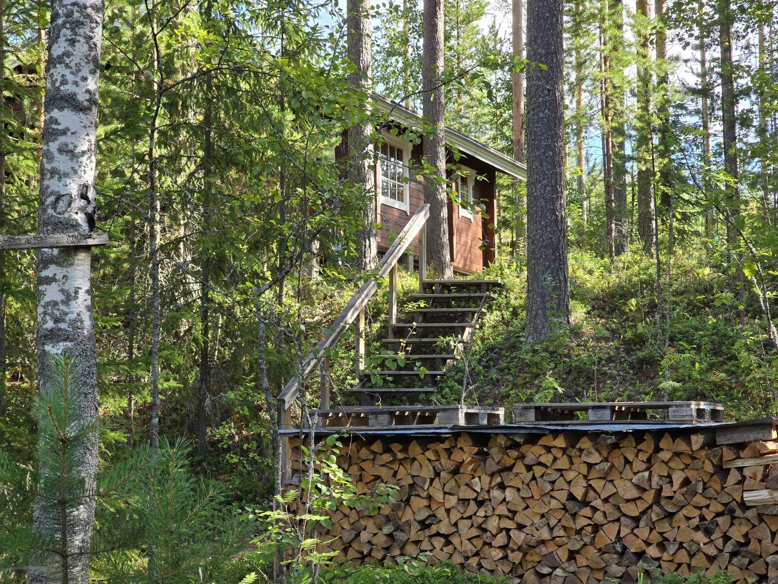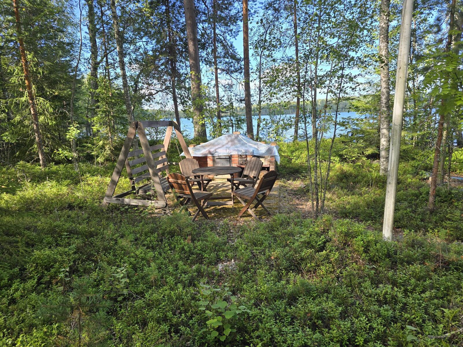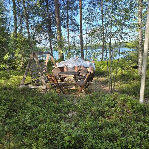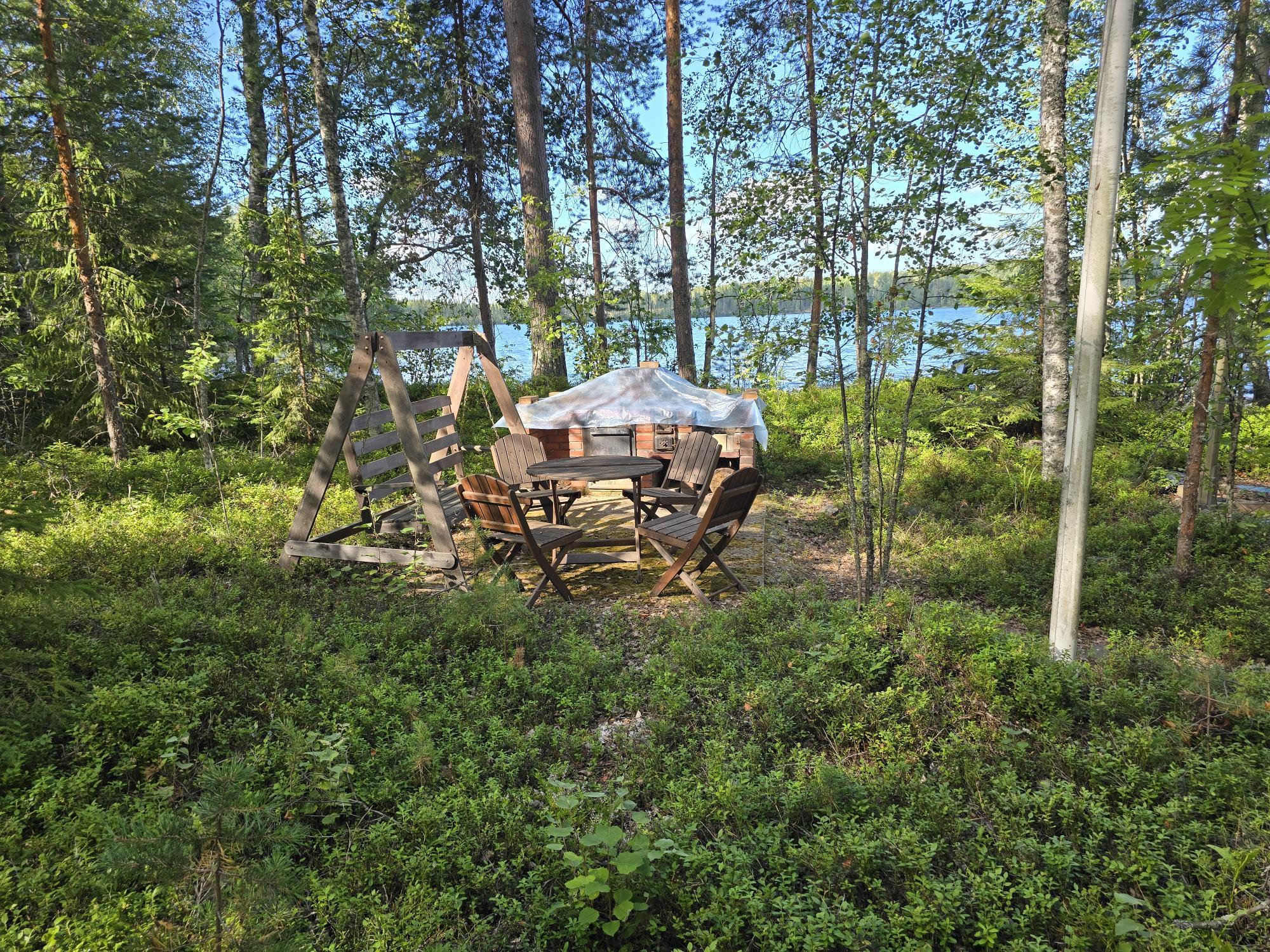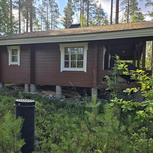 Ei juoksevaa vettä. Mökissä ja saunarakennuksessa omat sakokaivot ja maaimeytys pesuvesille