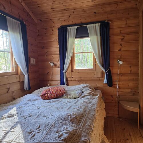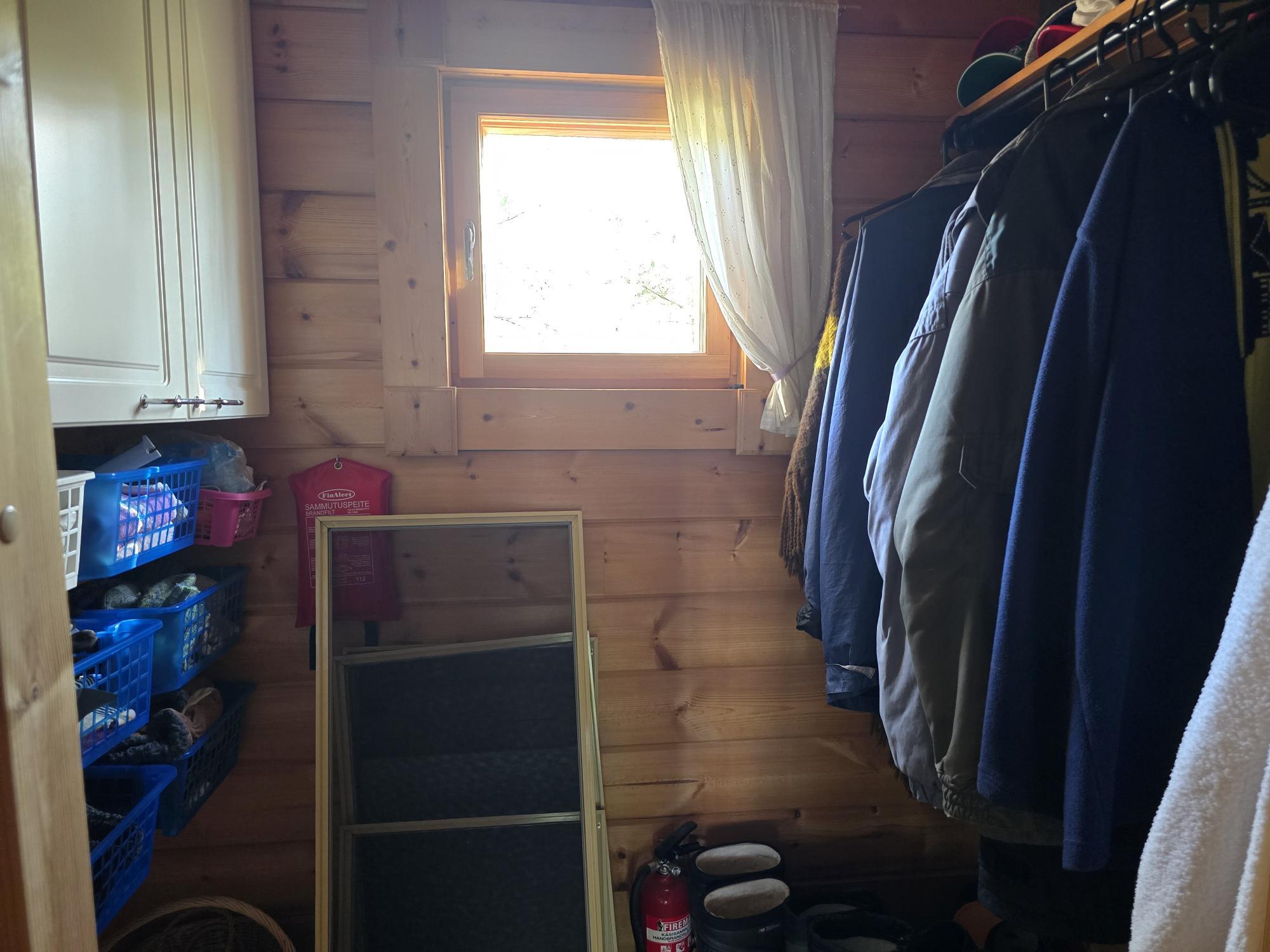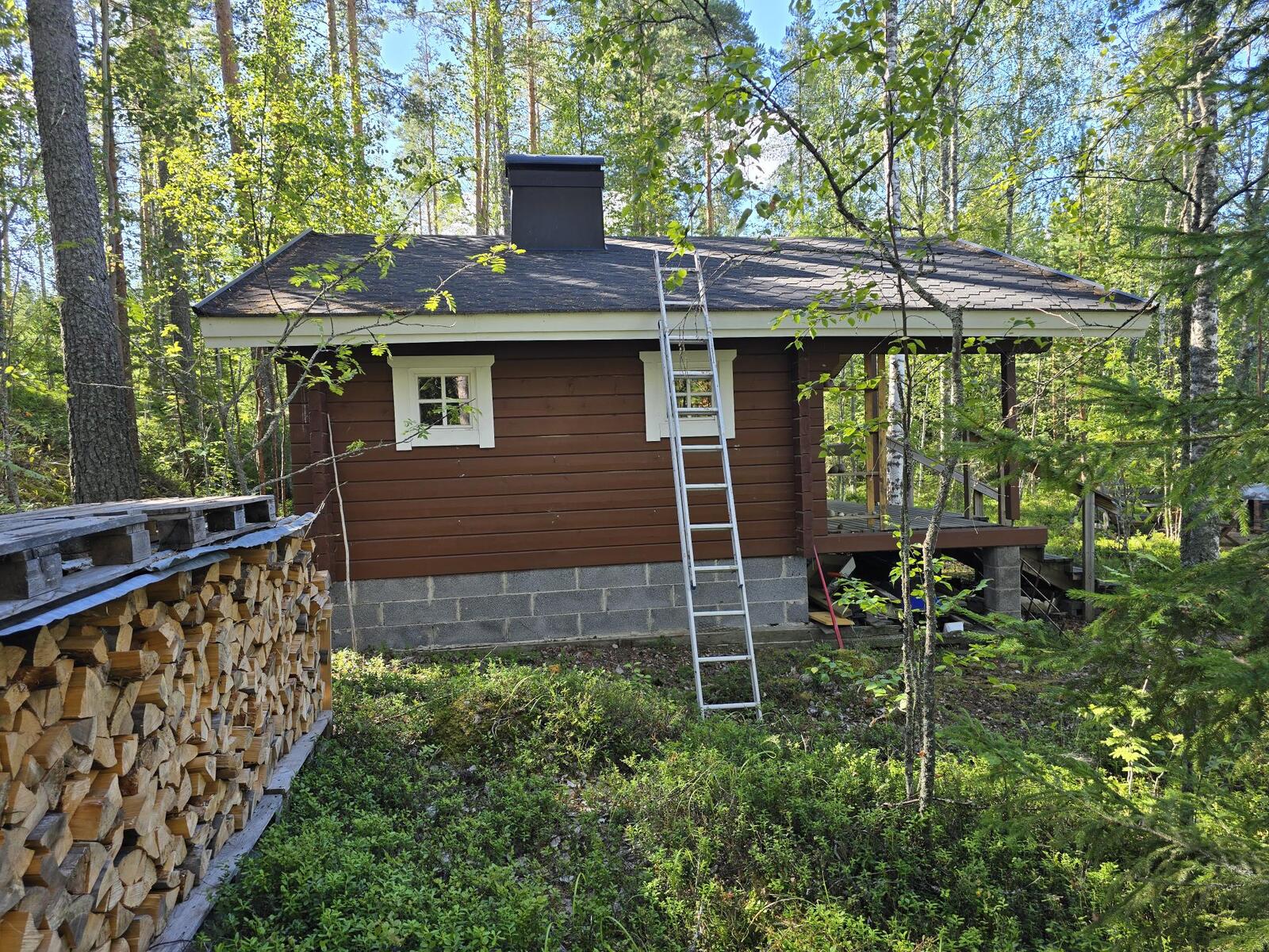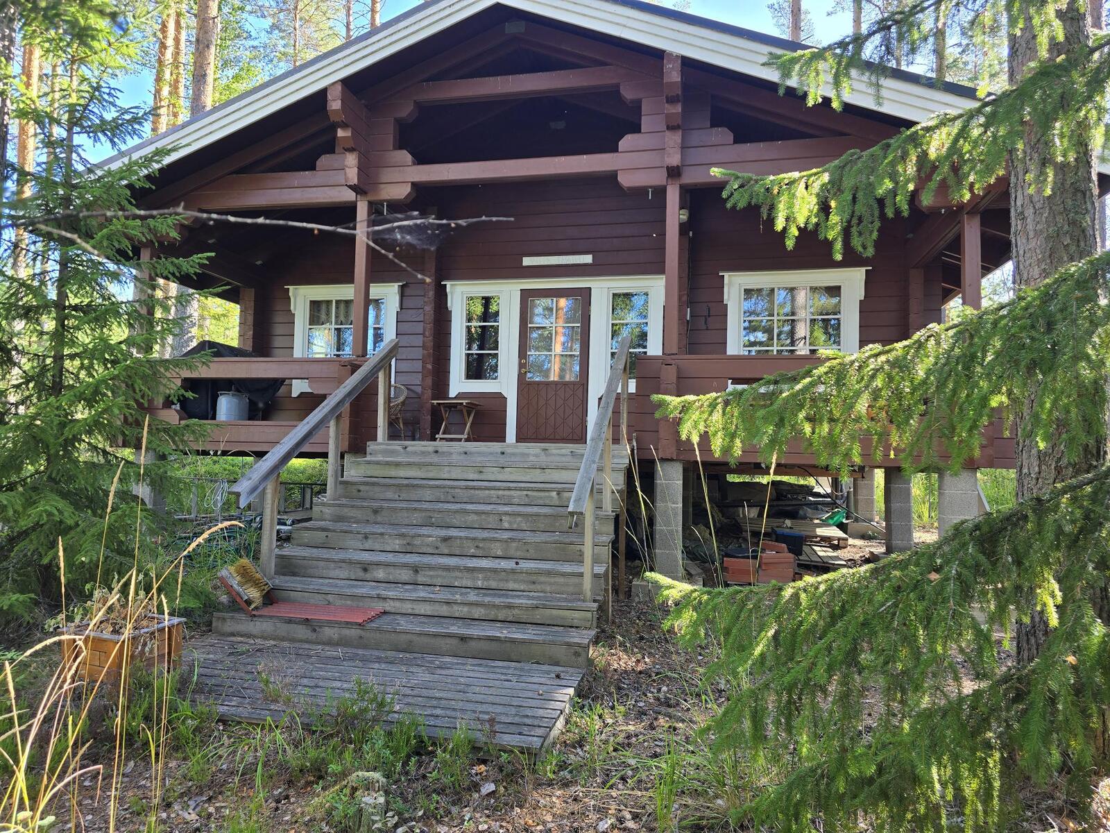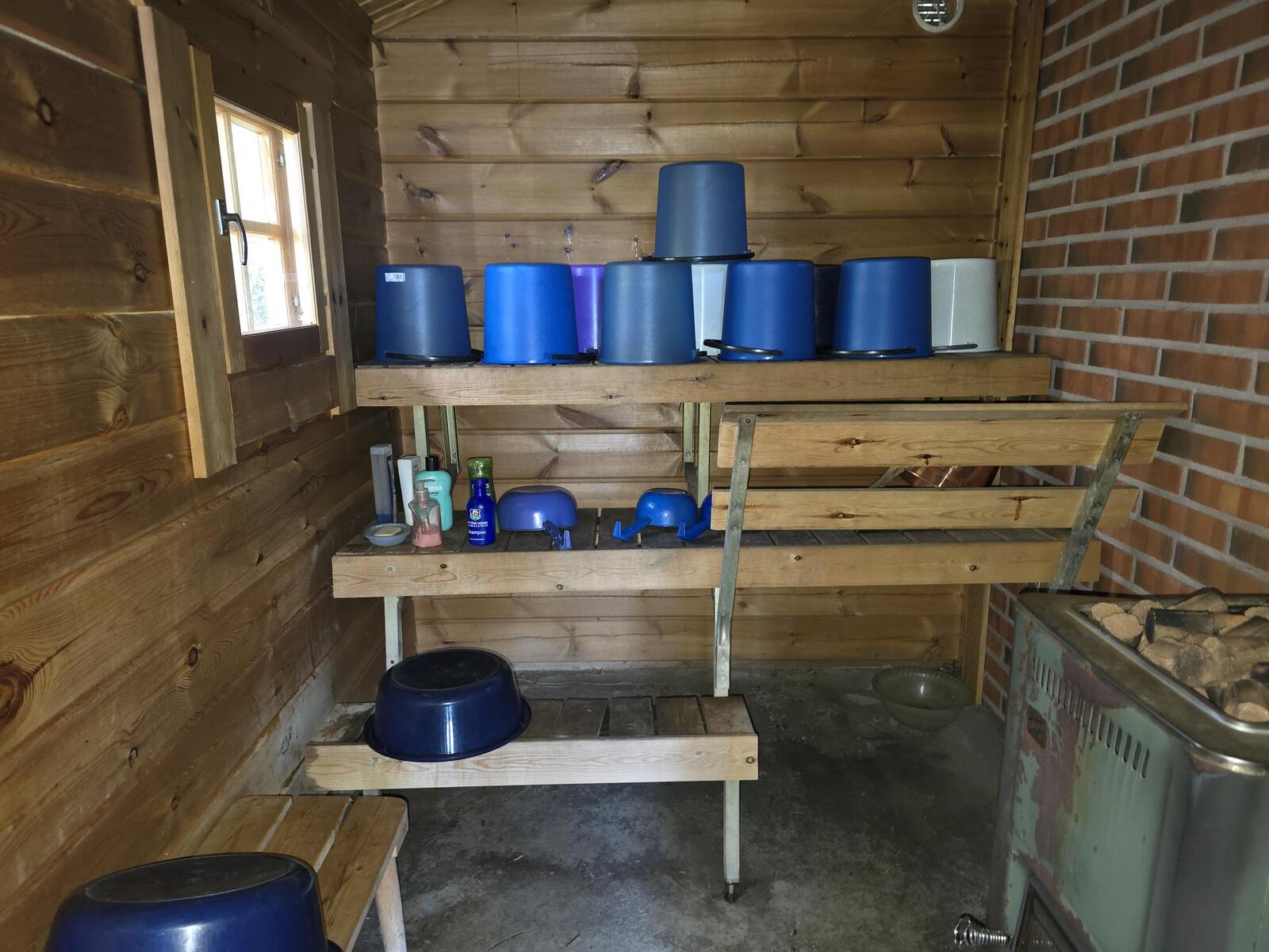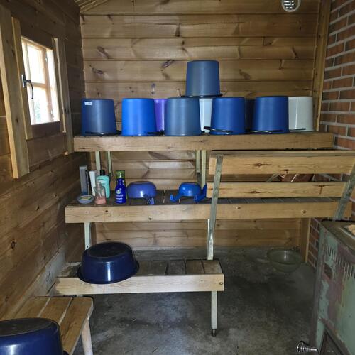Ei juoksevaa vettä. Mökissä ja saunarakennuksessa omat sakokaivot ja maaimeytys pesuvesille
