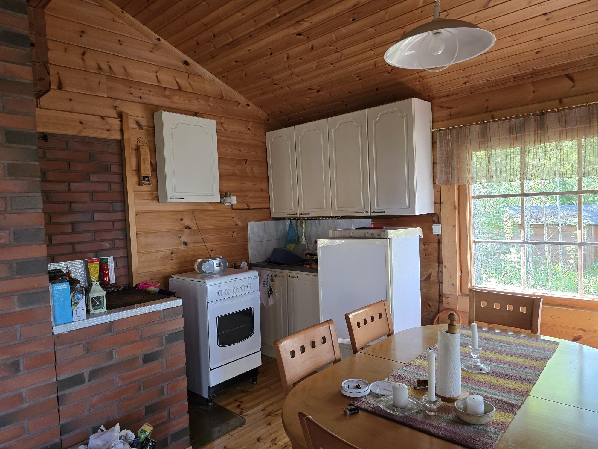 Varusteet: puuhella, kaasuliesi