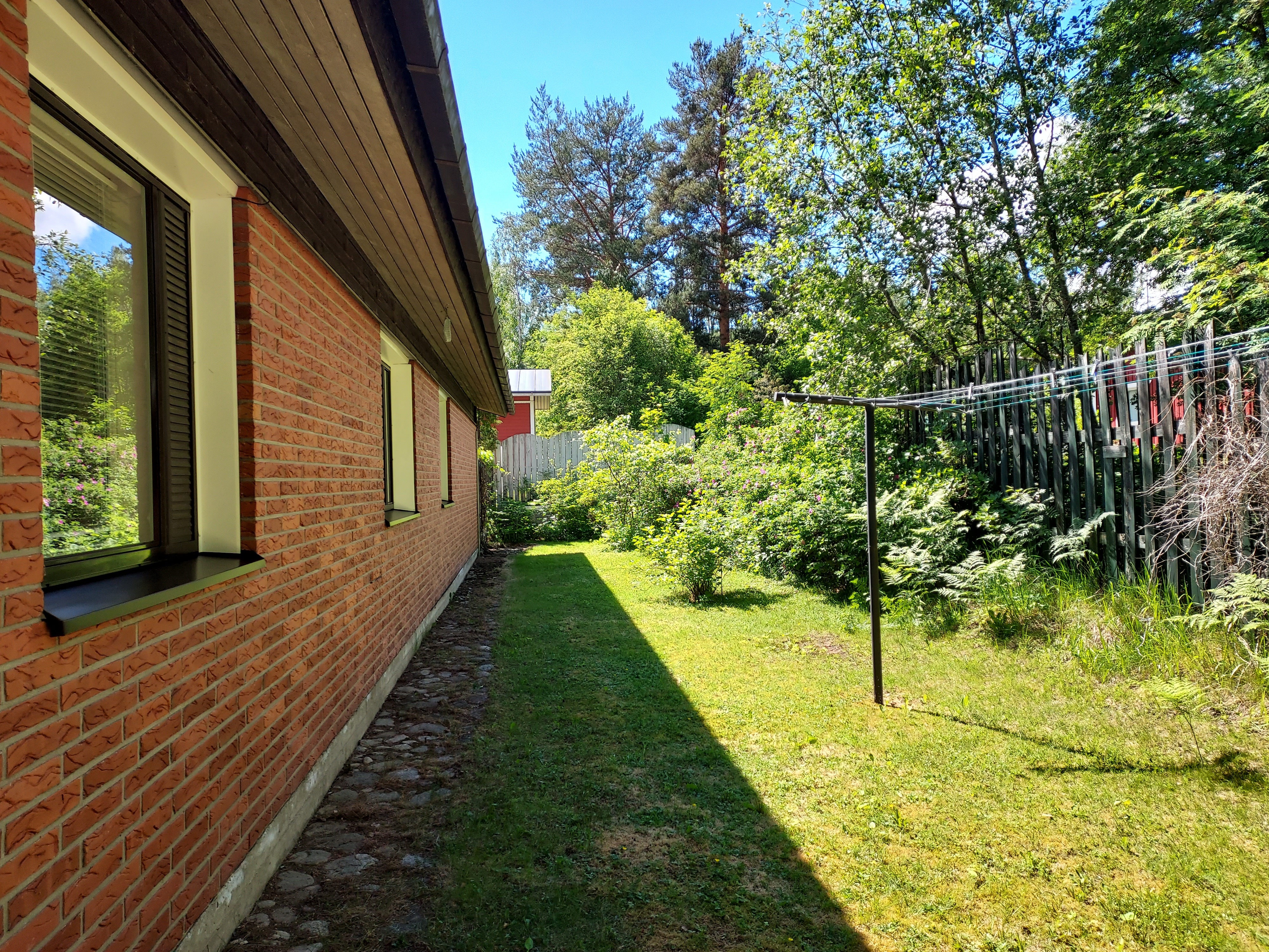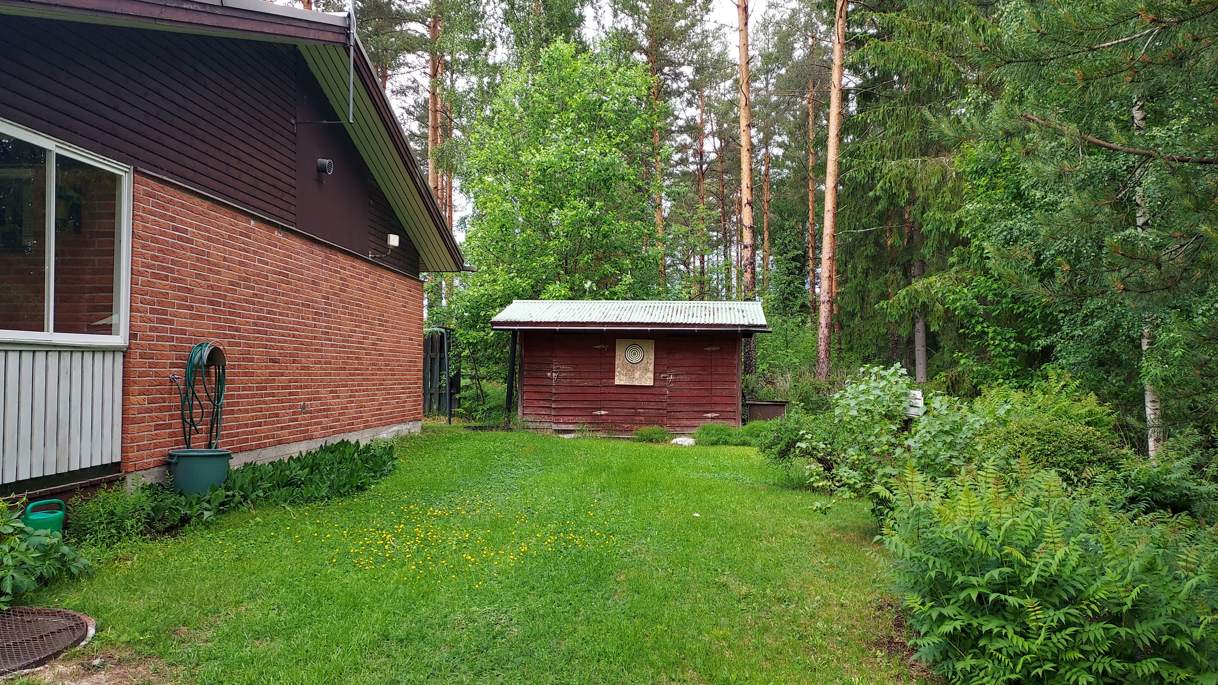 Vehreällä monimuotoisella puutarhatontilla kasvaa mm. omena- ja luumupuita, herukkapensaita ja perennoita. Tontilta löytyy laavu, hyvä maakellari sekä lautarakenteinen varastorakennus, jossa säilytystilaa puutarhavälineille ja polttopuille.